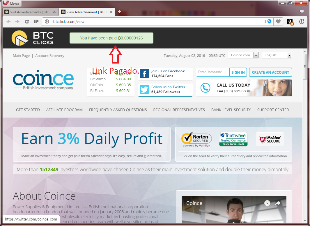 7. Debes terminar todos los link uno a uno y estos se liberaran en 24 horas de nuevo para hacer el mismo proceso todos los días y así ganar Bitcoin a diario.